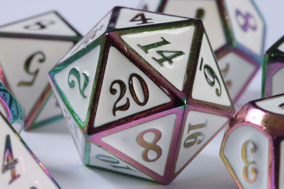 Set de dés en Métal Enameled Blanc Arc-en-ciel